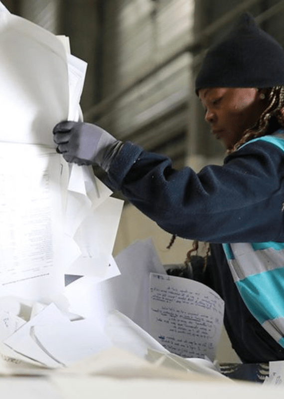 Massification, pesée, tri, pour vos textiles professionnels, papier et déchets de bureau avant envoi à nos partenaires recycleurs spécialisés. Nous assurons également la préparation de commandes et conditionnement, mise sous pli, numérisation et reporting.